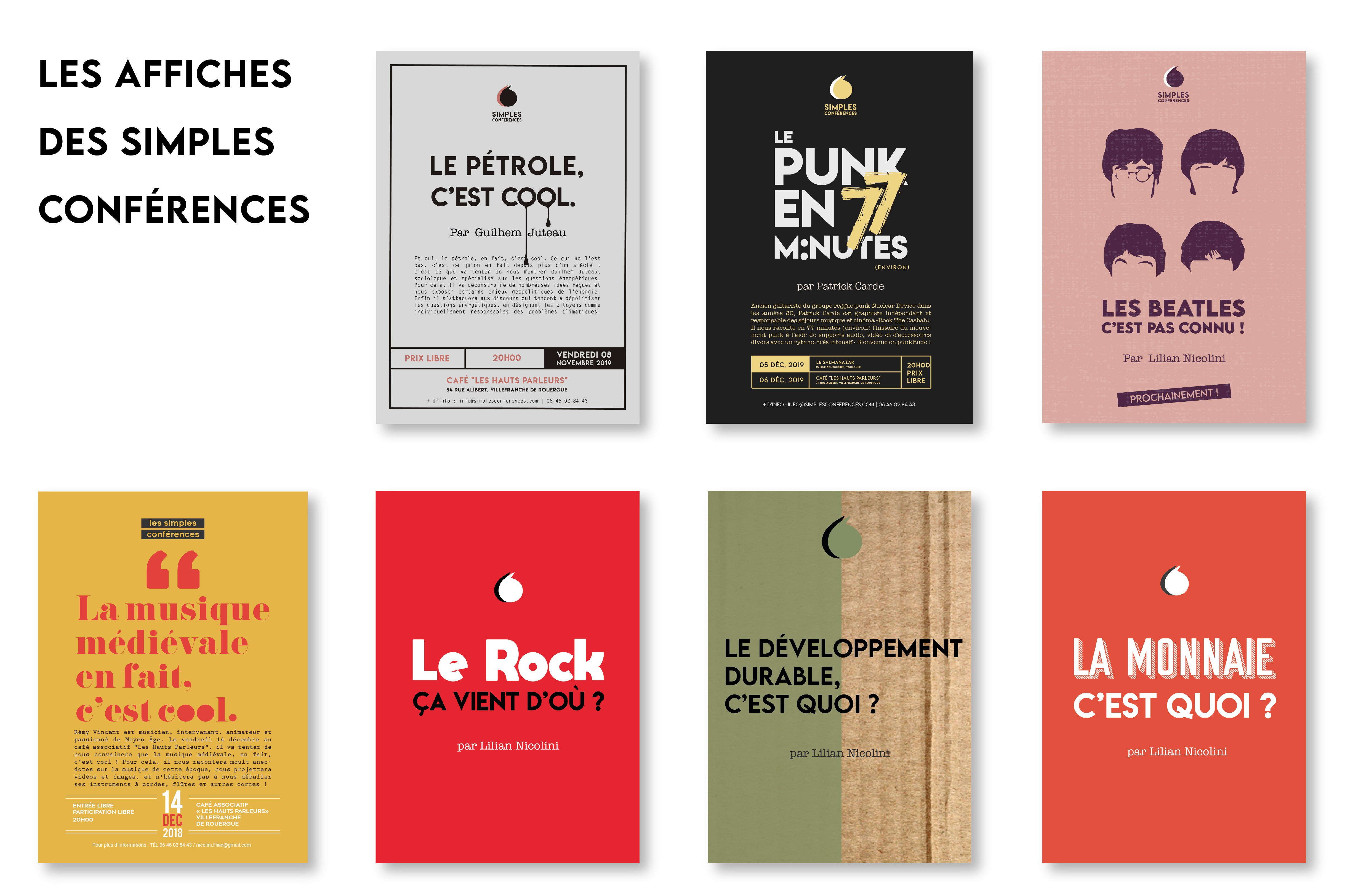 Direction artistique globale pour Simples Conférences, un cycle de rencontres qui rend la culture accessible à toutes et tous. Chaque conférence aborde une thématique différente — des Beatles à l’écologie, du punk à l’histoire de l’art — portée par des intervenant·es passionné·es, dans un format simple et convivial.
